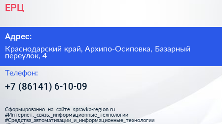 ЕРЦ по адресу Краснодарский край, Архипо-Осиповка, Базарный переулок, 4 в дальнейшем Организация, размещена в следующих категориях: