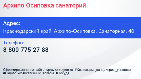 Архипо-Осиповка, санаторий по адресу Краснодарский край, Архипо-Осиповка, Санаторная, 40 в дальнейшем Организация, размещена в следующих категориях:
