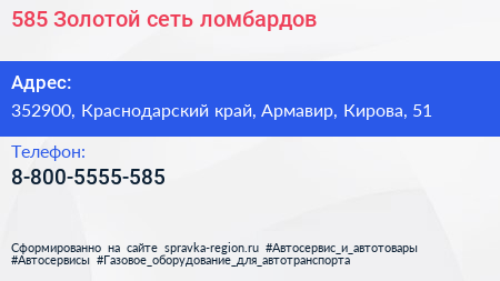 585*Золотой, сеть ломбардов по адресу 352900, Краснодарский край, Армавир, Кирова, 51 в дальнейшем Организация, размещена в следующих категориях: