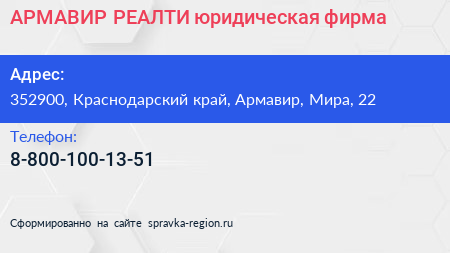 АРМАВИР РЕАЛТИ, юридическая фирма по адресу 352900, Краснодарский край, Армавир, Мира, 22 в дальнейшем Организация, размещена в следующих категориях: