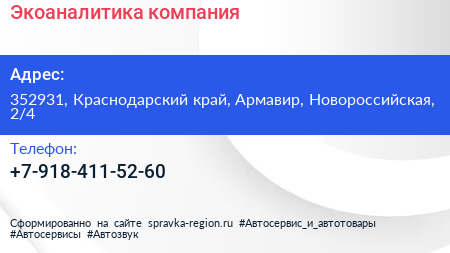 Экоаналитика, компания по адресу 352931, Краснодарский край, Армавир, Новороссийская, 2/4 в дальнейшем Организация, размещена в следующих категориях: