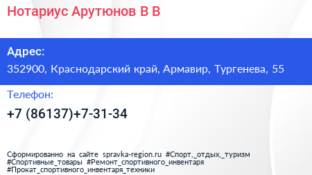 Нотариус Арутюнов В.В. по адресу 352900, Краснодарский край, Армавир, Тургенева, 55 в дальнейшем Организация, размещена в следующих категориях: