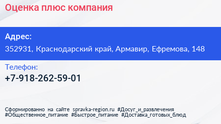 Оценка плюс, компания по адресу 352931, Краснодарский край, Армавир, Ефремова, 148 в дальнейшем Организация, размещена в следующих категориях:
