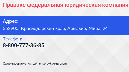 Правэкс, федеральная юридическая компания по адресу 352900, Краснодарский край, Армавир, Мира, 24 в дальнейшем Организация, размещена в следующих категориях: