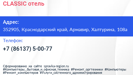 CLASSIC, отель по адресу 352905, Краснодарский край, Армавир, Халтурина, 108а в дальнейшем Организация, размещена в следующих категориях: