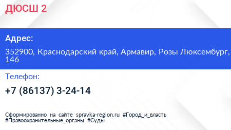 ДЮСШ №2 по адресу 352900, Краснодарский край, Армавир, Розы Люксембург, 146 в дальнейшем Организация, размещена в следующих категориях: