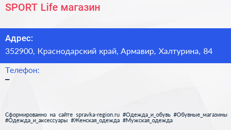 SPORT Life, магазин по адресу 352900, Краснодарский край, Армавир, Халтурина, 84 в дальнейшем Организация, размещена в следующих категориях: