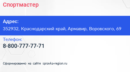Спортмастер по адресу 352932, Краснодарский край, Армавир, Воровского, 69 в дальнейшем Организация, размещена в следующих категориях: