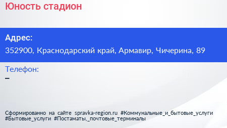 Юность, стадион по адресу 352900, Краснодарский край, Армавир, Чичерина, 89 в дальнейшем Организация, размещена в следующих категориях: