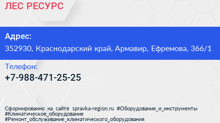 ЛЕС-РЕСУРС по адресу 352930, Краснодарский край, Армавир, Ефремова, 366/1 в дальнейшем Организация, размещена в следующих категориях: