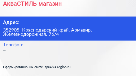 АкваСТИЛЬ, магазин по адресу 352905, Краснодарский край, Армавир, Железнодорожная, 76/4 в дальнейшем Организация, размещена в следующих категориях: