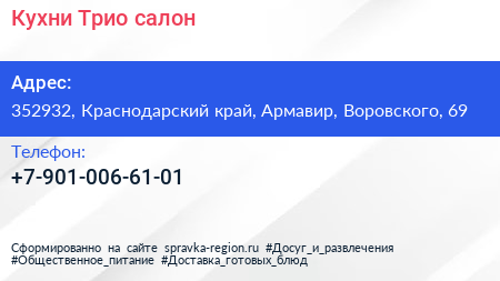 Кухни Трио, салон по адресу 352932, Краснодарский край, Армавир, Воровского, 69 в дальнейшем Организация, размещена в следующих категориях: