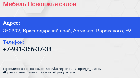 Мебель Поволжья, салон по адресу 352932, Краснодарский край, Армавир, Воровского, 69 в дальнейшем Организация, размещена в следующих категориях: