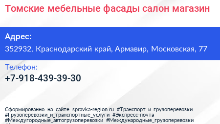 Томские мебельные фасады, салон-магазин по адресу 352932, Краснодарский край, Армавир, Московская, 77 в дальнейшем Организация, размещена в следующих категориях: