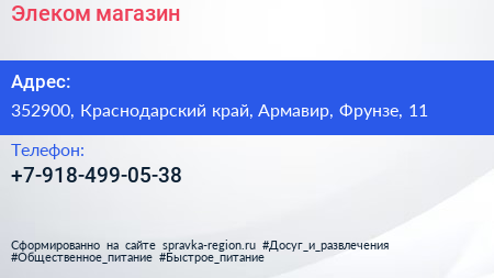 Элеком, магазин по адресу 352900, Краснодарский край, Армавир, Фрунзе, 11 в дальнейшем Организация, размещена в следующих категориях: