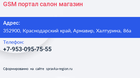 GSM-портал, салон-магазин по адресу 352900, Краснодарский край, Армавир, Халтурина, 86а в дальнейшем Организация, размещена в следующих категориях: