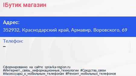 IБутик, магазин по адресу 352932, Краснодарский край, Армавир, Воровского, 69 в дальнейшем Организация, размещена в следующих категориях: