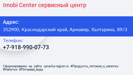 Imobi Center, сервисный центр по адресу 352900, Краснодарский край, Армавир, Халтурина, 89/3 в дальнейшем Организация, размещена в следующих категориях: