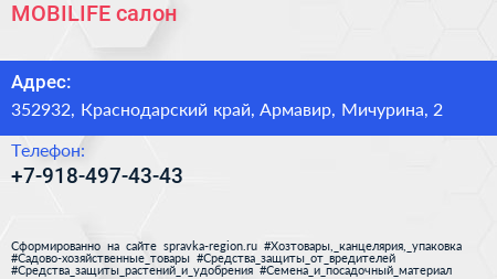 MOBILIFE, салон по адресу 352932, Краснодарский край, Армавир, Мичурина, 2 в дальнейшем Организация, размещена в следующих категориях:
