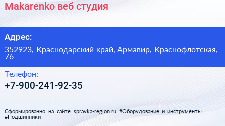 Makarenko, веб-студия по адресу 352923, Краснодарский край, Армавир, Краснофлотская, 76 в дальнейшем Организация, размещена в следующих категориях: