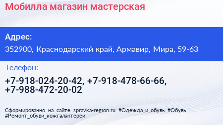 Мобилла, магазин-мастерская по адресу 352900, Краснодарский край, Армавир, Мира, 59-63 в дальнейшем Организация, размещена в следующих категориях: