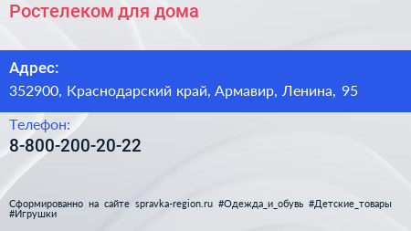 Ростелеком для дома по адресу 352900, Краснодарский край, Армавир, Ленина, 95 в дальнейшем Организация, размещена в следующих категориях: