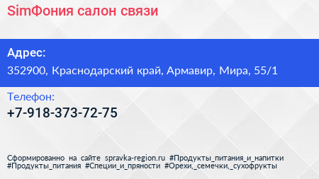 SimФония, салон связи по адресу 352900, Краснодарский край, Армавир, Мира, 55/1 в дальнейшем Организация, размещена в следующих категориях: