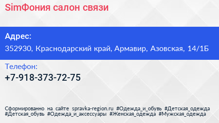 SimФония, салон связи по адресу 352930, Краснодарский край, Армавир, Азовская, 14/1Б в дальнейшем Организация, размещена в следующих категориях: