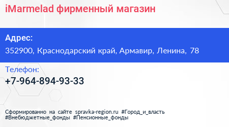iMarmelad, фирменный магазин по адресу 352900, Краснодарский край, Армавир, Ленина, 78 в дальнейшем Организация, размещена в следующих категориях: