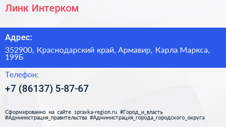 Линк-Интерком по адресу 352900, Краснодарский край, Армавир, Карла Маркса, 199Б в дальнейшем Организация, размещена в следующих категориях: