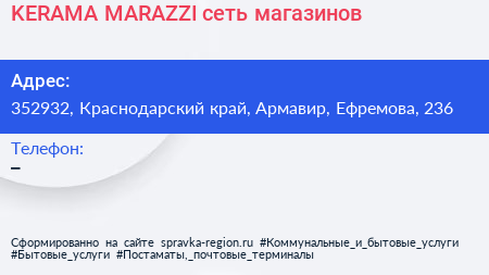 KERAMA MARAZZI, сеть магазинов по адресу 352932, Краснодарский край, Армавир, Ефремова, 236 в дальнейшем Организация, размещена в следующих категориях: