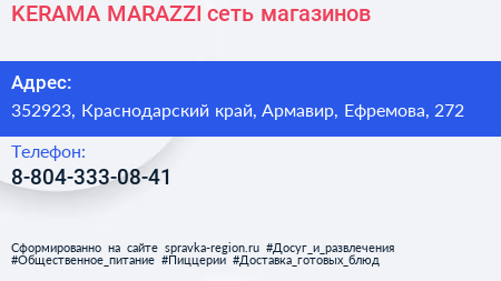 KERAMA MARAZZI, сеть магазинов по адресу 352923, Краснодарский край, Армавир, Ефремова, 272 в дальнейшем Организация, размещена в следующих категориях: