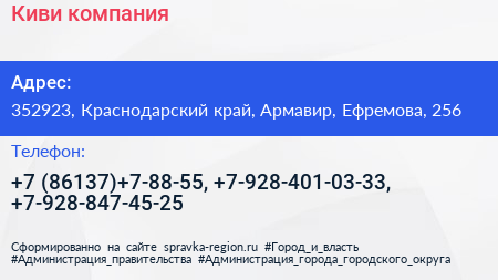 Киви, компания по адресу 352923, Краснодарский край, Армавир, Ефремова, 256 в дальнейшем Организация, размещена в следующих категориях: