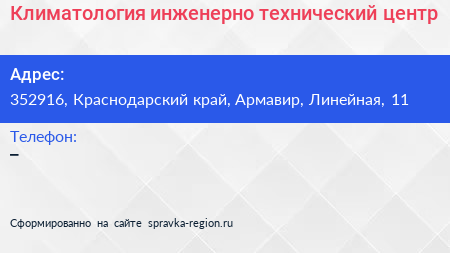 Климатология, инженерно-технический центр по адресу 352916, Краснодарский край, Армавир, Линейная, 11 в дальнейшем Организация, размещена в следующих категориях: