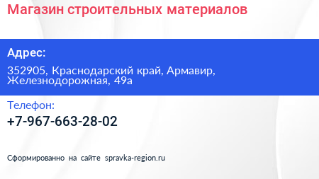 Магазин строительных материалов по адресу 352905, Краснодарский край, Армавир, Железнодорожная, 49а в дальнейшем Организация, размещена в следующих категориях: