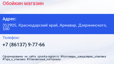 Обойкин, магазин по адресу 352905, Краснодарский край, Армавир, Дзержинского, 100 в дальнейшем Организация, размещена в следующих категориях:
