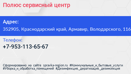 Полюс, сервисный центр по адресу 352905, Краснодарский край, Армавир, Володарского, 116 в дальнейшем Организация, размещена в следующих категориях: