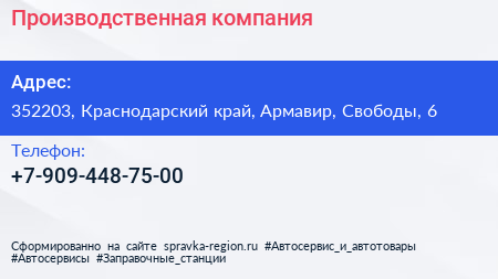 Производственная компания по адресу 352203, Краснодарский край, Армавир, Свободы, 6 в дальнейшем Организация, размещена в следующих категориях: