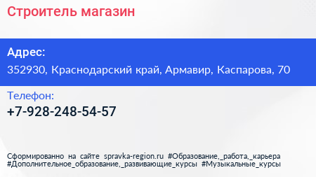 Строитель, магазин по адресу 352930, Краснодарский край, Армавир, Каспарова, 70 в дальнейшем Организация, размещена в следующих категориях: