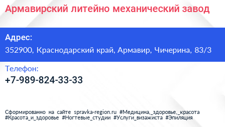 Армавирский литейно-механический завод по адресу 352900, Краснодарский край, Армавир, Чичерина, 83/3 в дальнейшем Организация, размещена в следующих категориях: