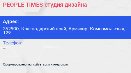 PEOPLE & TIMES, студия дизайна по адресу 352900, Краснодарский край, Армавир, Комсомольская, 129 в дальнейшем Организация, размещена в следующих категориях: