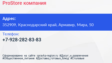 ProStore, компания по адресу 352909, Краснодарский край, Армавир, Мира, 50 в дальнейшем Организация, размещена в следующих категориях: