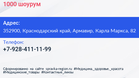 1000, шоурум по адресу 352900, Краснодарский край, Армавир, Карла Маркса, 82 в дальнейшем Организация, размещена в следующих категориях: