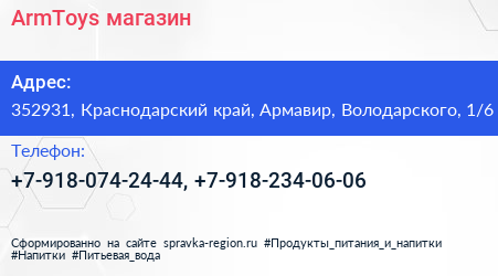 ArmToys, магазин по адресу 352931, Краснодарский край, Армавир, Володарского, 1/6 в дальнейшем Организация, размещена в следующих категориях: