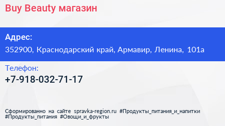 Buy Beauty, магазин по адресу 352900, Краснодарский край, Армавир, Ленина, 101а в дальнейшем Организация, размещена в следующих категориях: