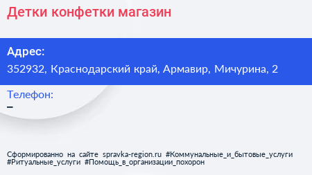 Детки-конфетки, магазин по адресу 352932, Краснодарский край, Армавир, Мичурина, 2 в дальнейшем Организация, размещена в следующих категориях: