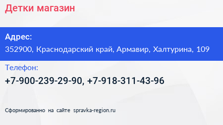 Детки, магазин по адресу 352900, Краснодарский край, Армавир, Халтурина, 109 в дальнейшем Организация, размещена в следующих категориях: