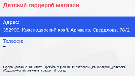 Детский гардероб, магазин по адресу 352900, Краснодарский край, Армавир, Свердлова, 78/2 в дальнейшем Организация, размещена в следующих категориях: