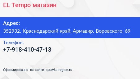 EL Tempo, магазин по адресу 352932, Краснодарский край, Армавир, Воровского, 69 в дальнейшем Организация, размещена в следующих категориях: