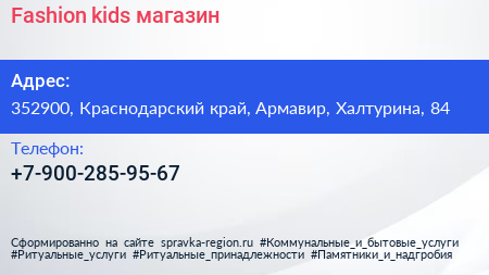 Fashion kids, магазин по адресу 352900, Краснодарский край, Армавир, Халтурина, 84 в дальнейшем Организация, размещена в следующих категориях: